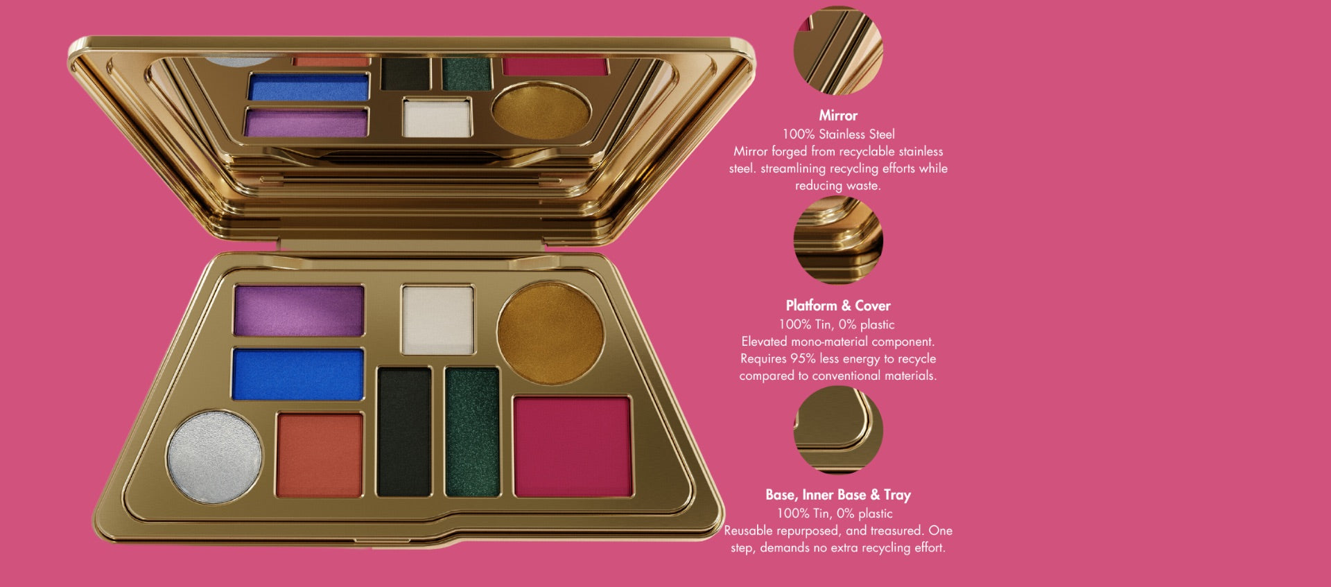 9 Colors Curated with Care / Clean, Talc-Free Formulas / Plastic Free, Made of Metal